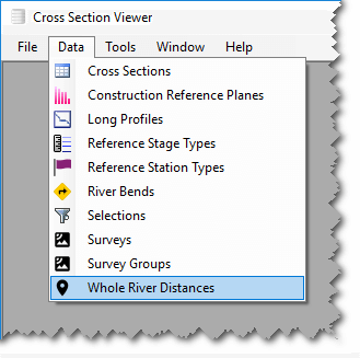 Users can export the list of whole river mile locations by clicking the Export item within the Edit menu. A comma separated value (CSV) file is produced of all the values contained in the current database.