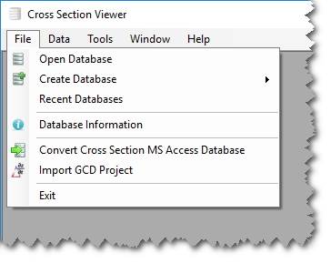 The File Menu contains commands to open cross section databases, create new ones and close the software.